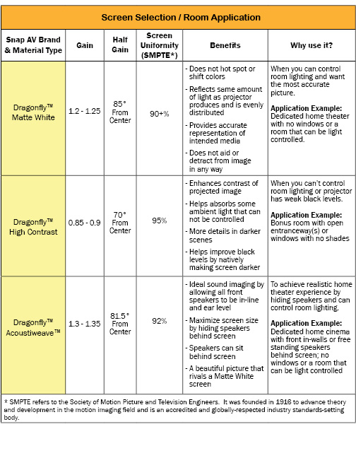 AcoustiWeave™ screens are revolutionary in the world of perforated screens. High performance materials, exacting manufacturing tolerances, angle cut to eliminate moire', and an included scrim cloth to eliminate light reflection back through the screen make these screens industry leading and category changing. With the addition of AcoustiWeave™ to the Dragonfly screen line, we can now provide you with the option to get the most out of your home cinema experience.